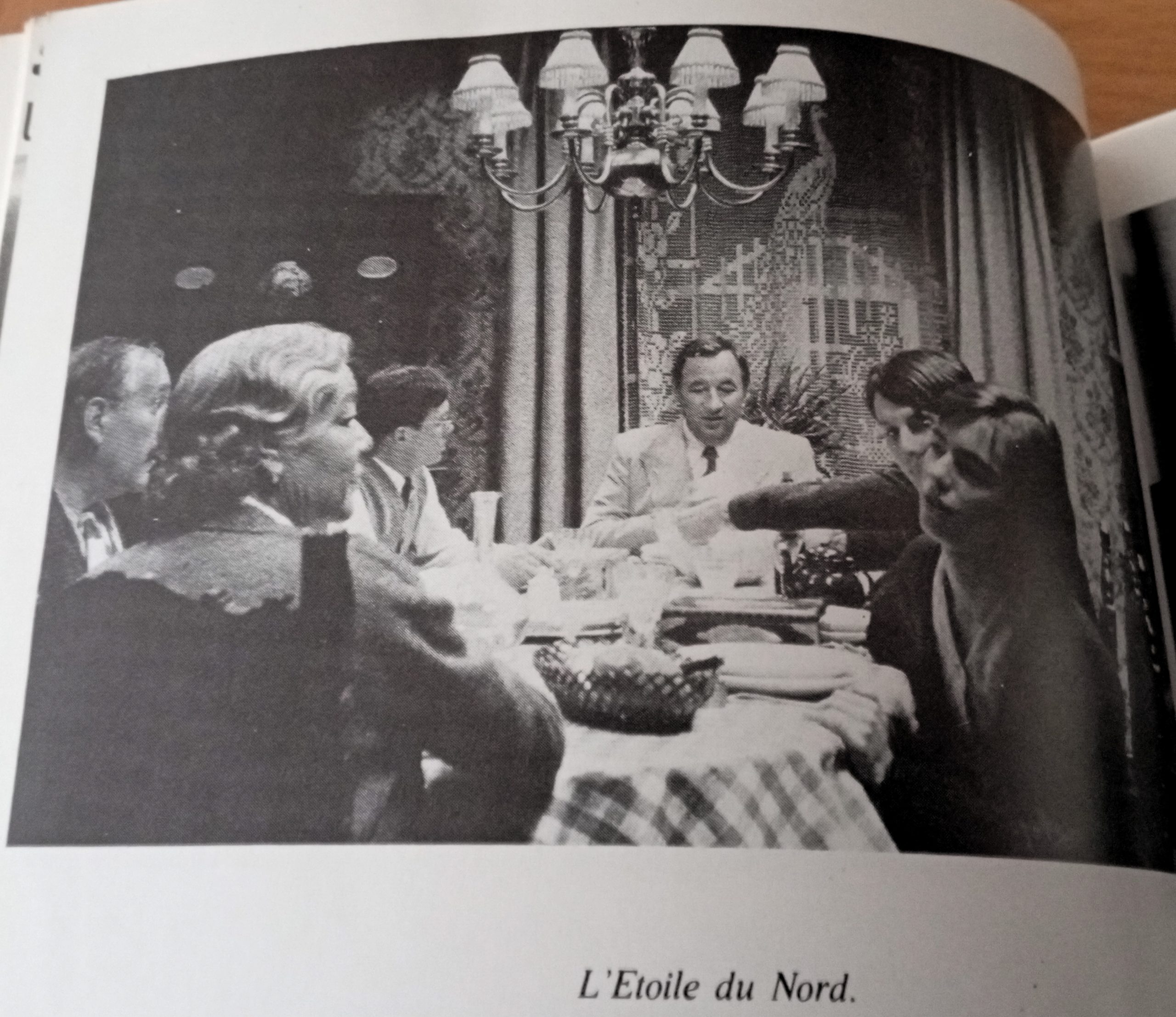 et pour finir ce cinéma-là (à ce moment, je passe, rue Fontarabie – elle porte des lunettes de soleil, des cheveux d’un joli mauve – à ce moment-là sur le plateau Philippe Noiret son fez et son pull blanc à torsade)