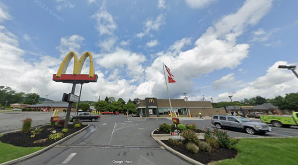 abattait de trois balles dans le dos (les douilles de ces balles étaient tatouées des mots deny (refuser) delay (faire traîner) depose (refuser) : en trois mots,les agissements de l’assurance-maladie privée étazunienne). Puis il prenait la fuite (photo de gauche) sur un vélo de location. Cinq jours plus tard, la police d’une petite ville, Altoona (Pennsylvanie), lui mettait le grappin dessus (il avait été reconnu par une caissière de macdo – la ville en dispose de 3 (ah oui quand même), je pose ici cette image pour fixer les idées – puisque toutes les enseignes de cette marques sont semblables,ça ne fixe rien, je sais aussi)