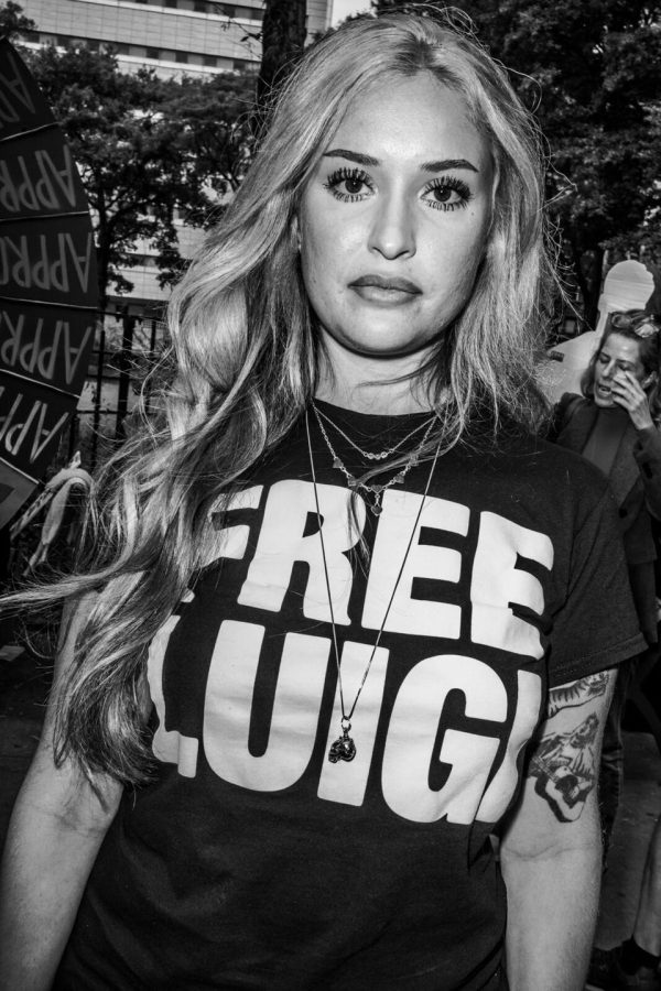 L’influenceuse Abril Rios, supportrice de Luigi Mangione, devant le palais de justice de Manhattan, à New York, le 16 septembre.
